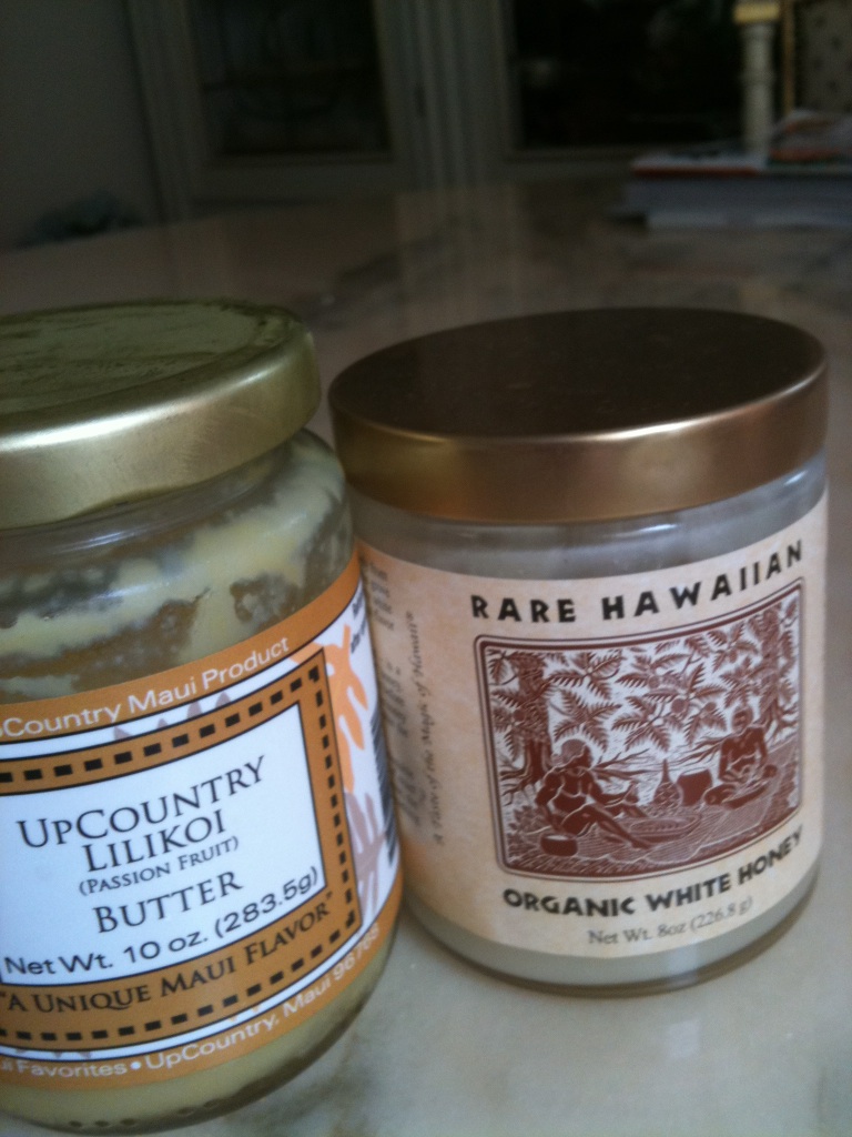 左がマウイ島リリコイ牧場のリリコイバター。普通バターって固形なんだけど、これは固形でも、とってもソフト。