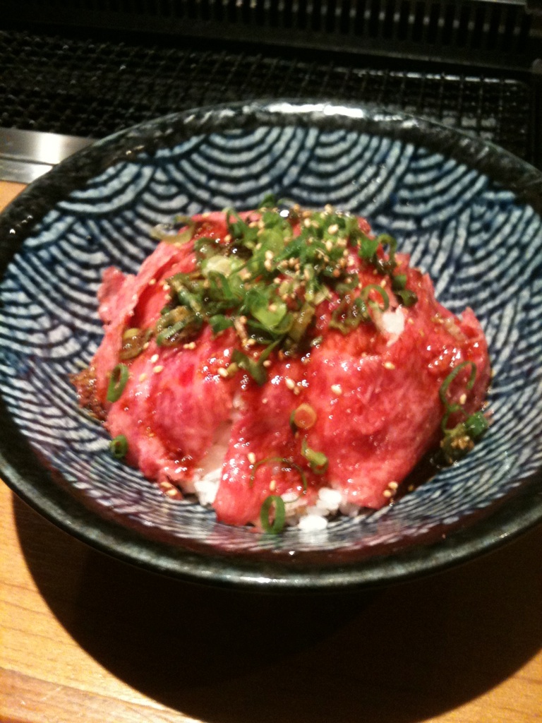 ご飯の上に生肉がのってます( ̄▽ ̄)